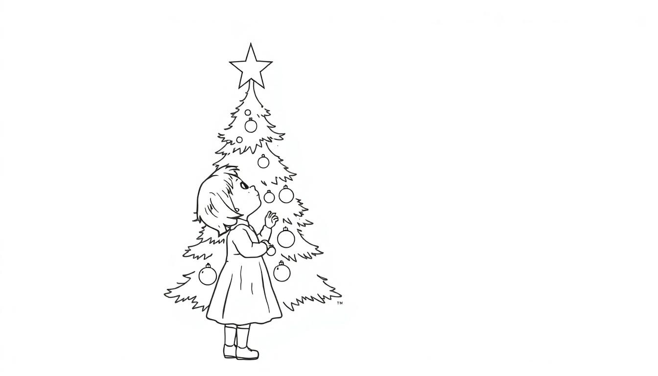 Die Magie des ersten Blicks: Ein Mädchen und der Weihnachtsbaum zum Ausmalen